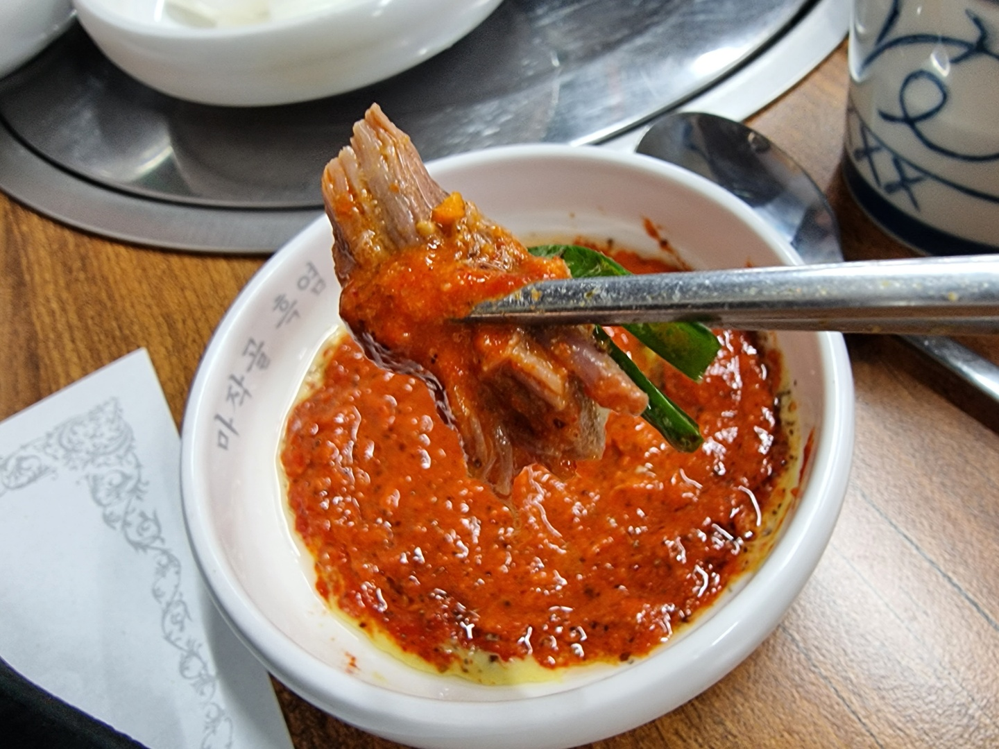 고기를 건져서 이렇게 생긴 소스에 찍어먹으면 된다.