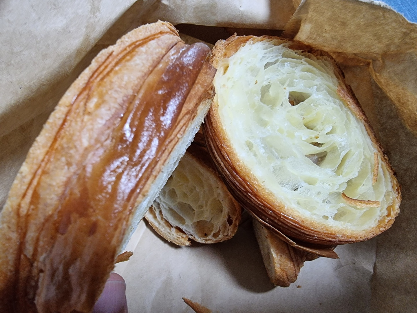 크루아상은 저 나무껍찔처럼 생겨서 겉에 윤기가 돈다.