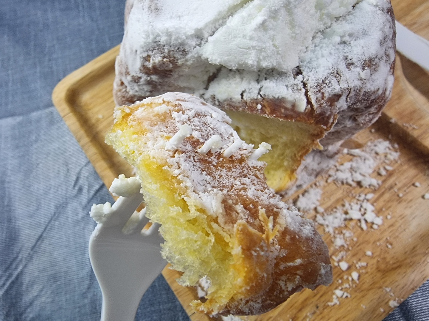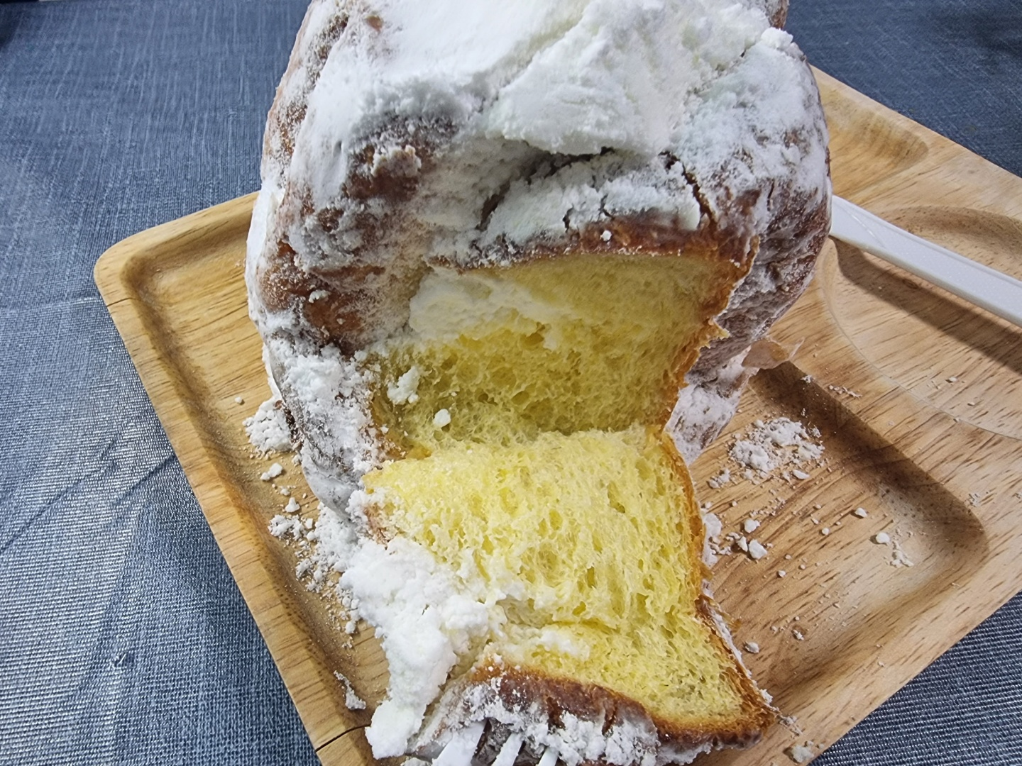 안에는 카스테라 같은 느낌의 황금빛을 도는 빵이다.