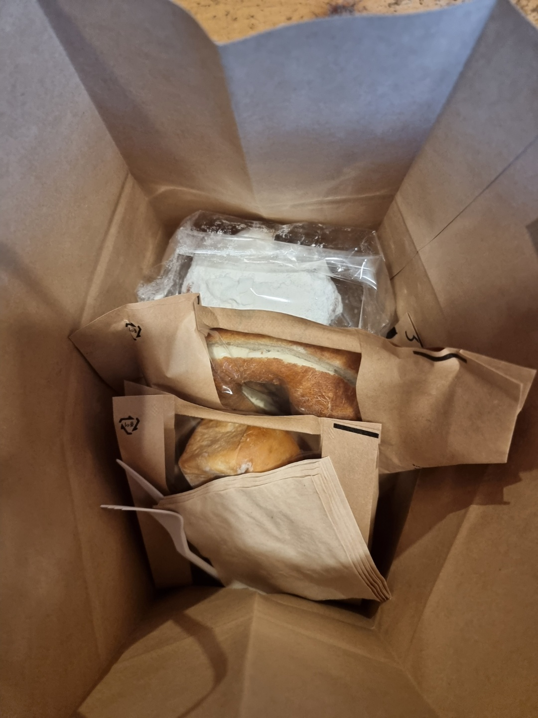 나는 생크림팡도르 (7,500)와 어니크림치즈 베이글(4,500)과 성북동식빵(5,500)을 포장해왔다.