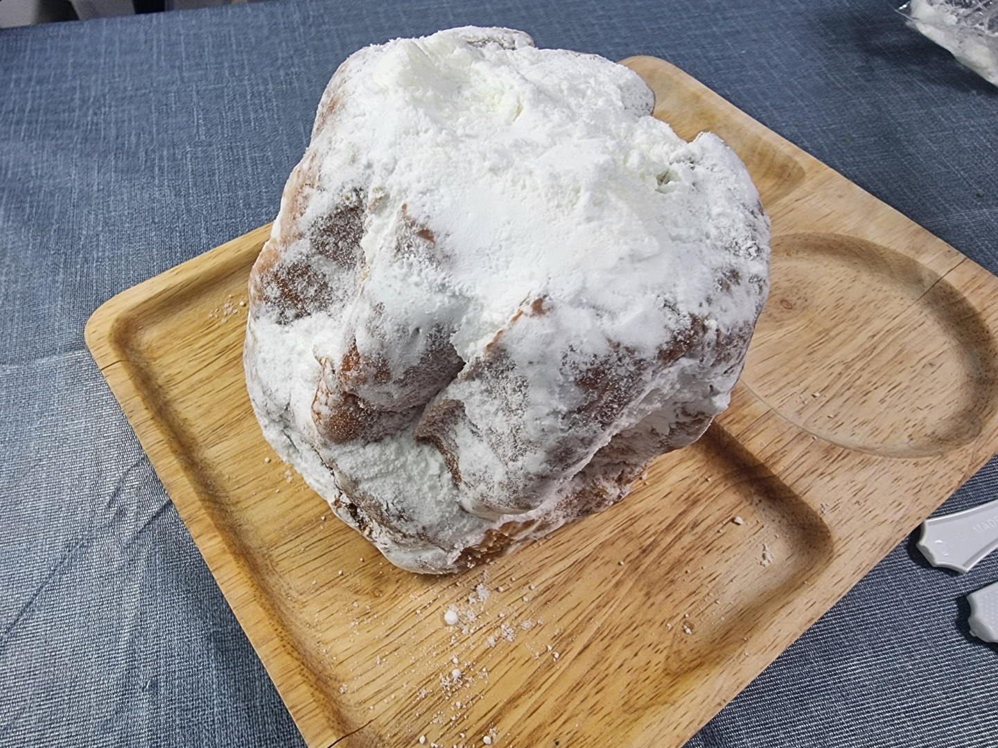 겉에는 눈이 온것 같이 생크림 가루가 뿌려져 있고