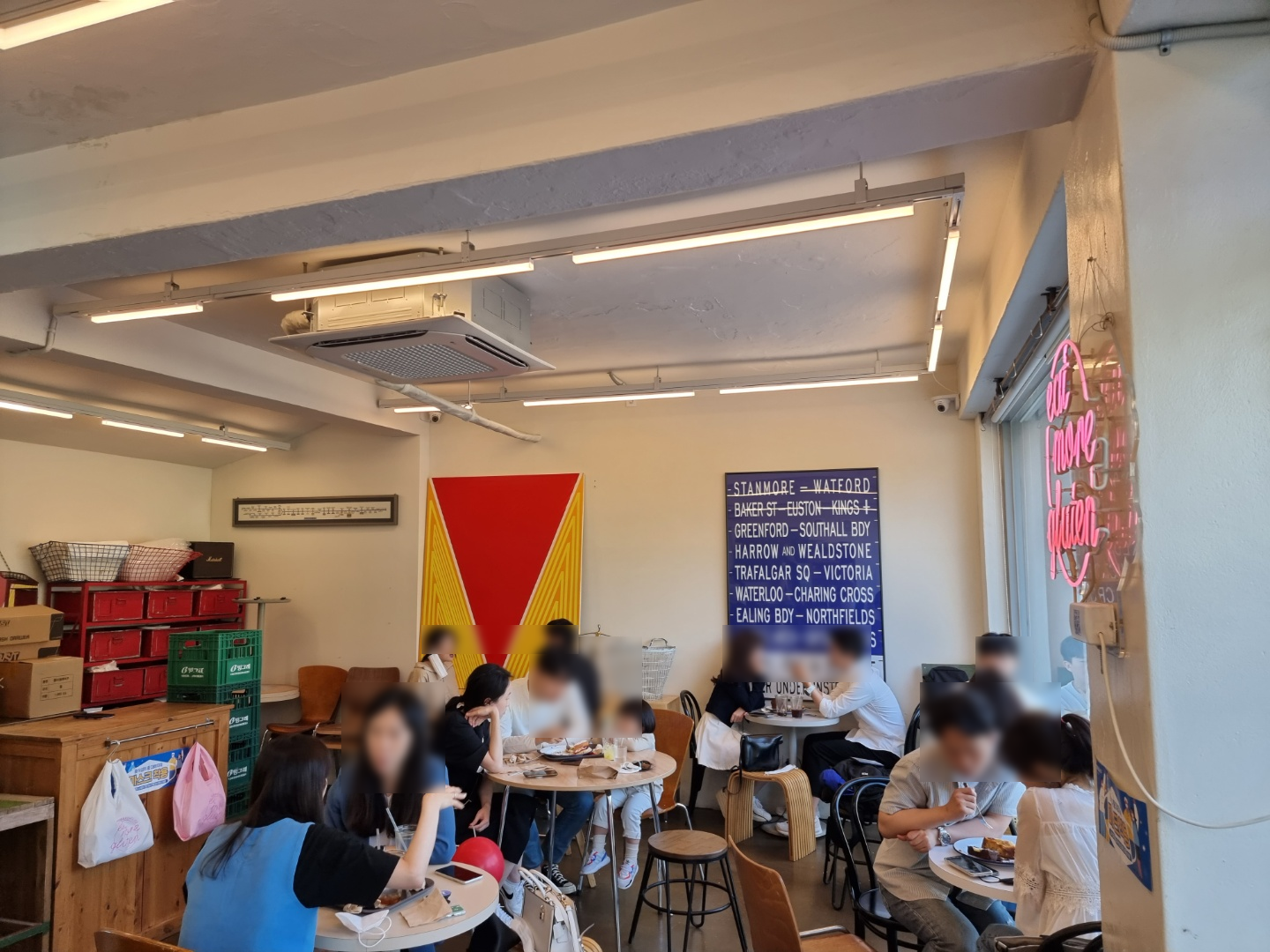 안에는 빵을 고르는 공간과 먹는 공간이 분리되어있다.
