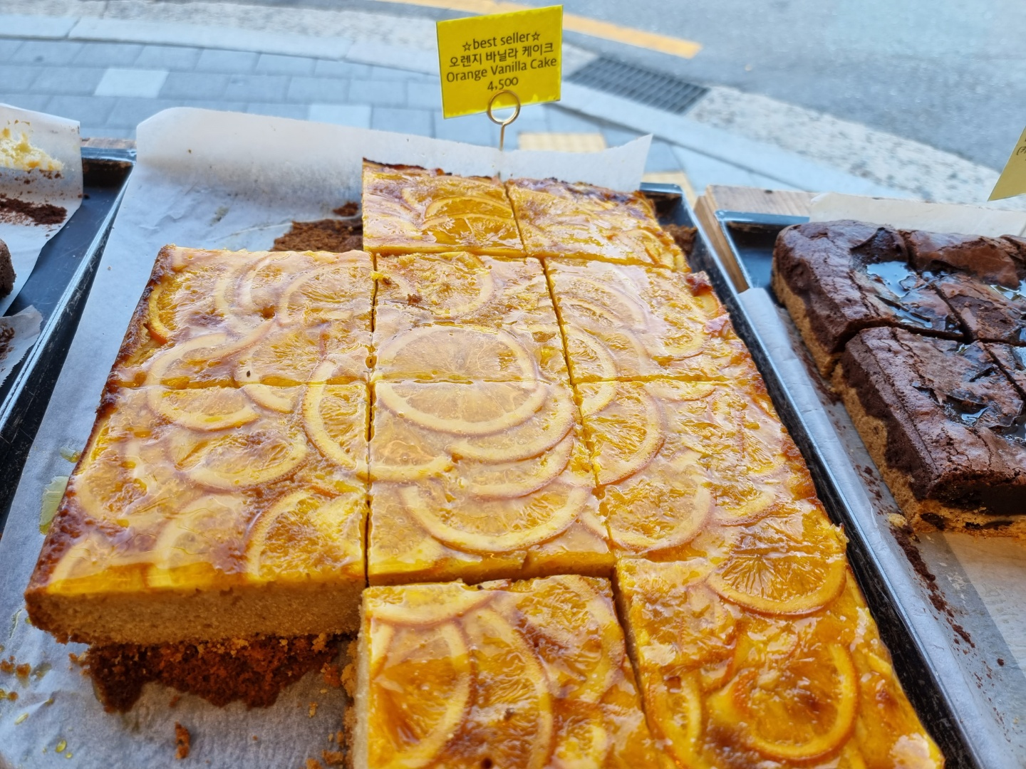 오렌지 바닐라 케이크랑 부숑을 샀다.