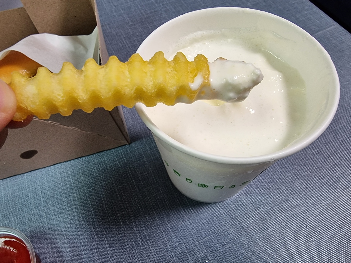 케찹을 듬뿍 담고 마요네즈도 셀프로 챙겨올 수 있다는게 너무 마음에 든다.