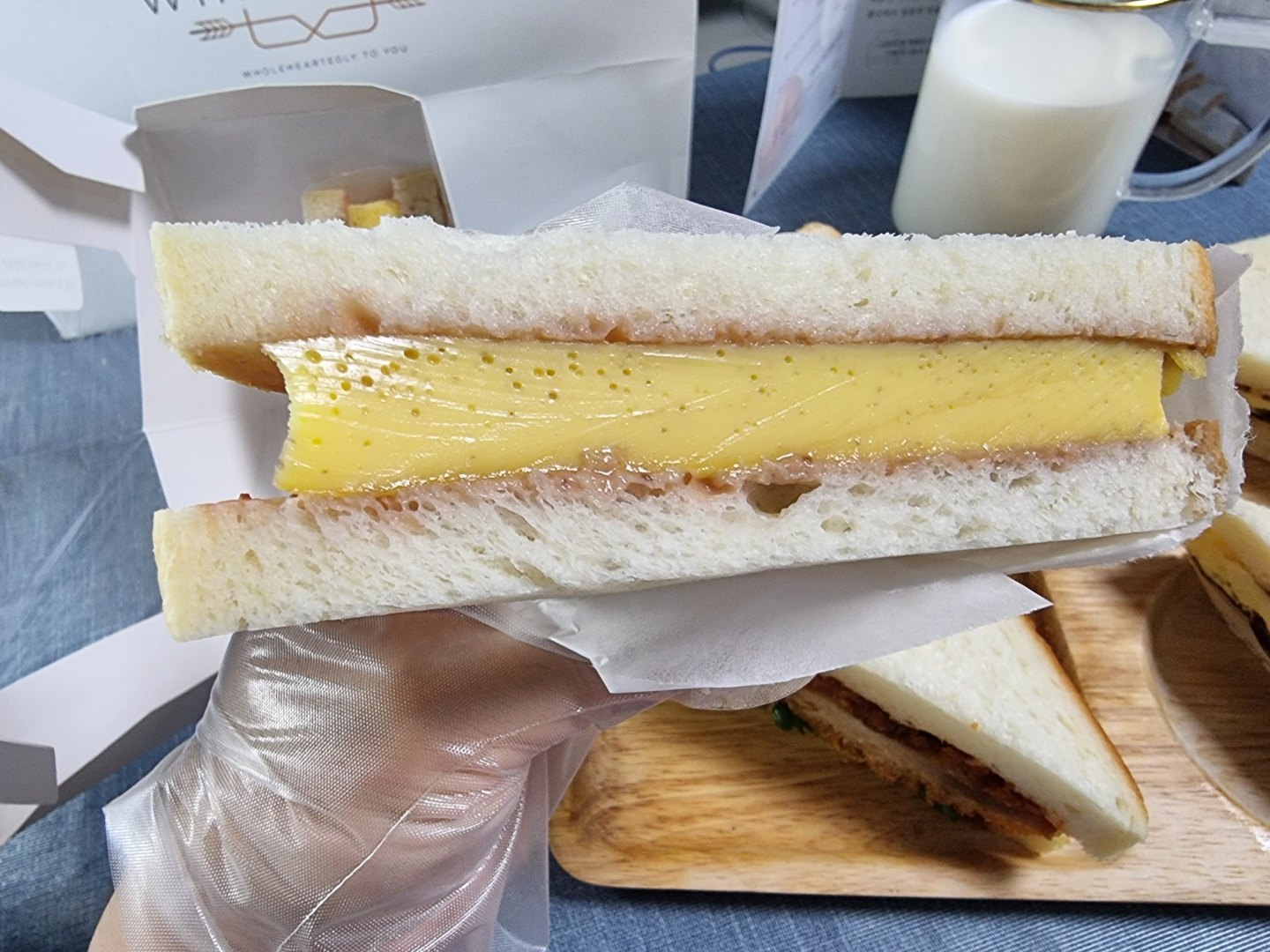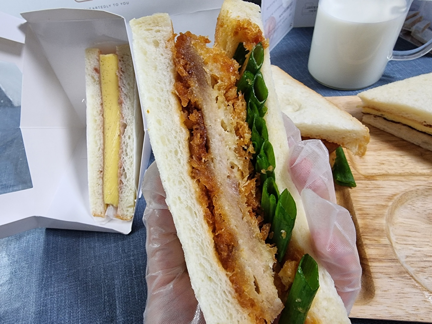 식빵을 보자마자 나는 타마고 산도와 카츠산도를 만들어야겠다고 생각이 들어서