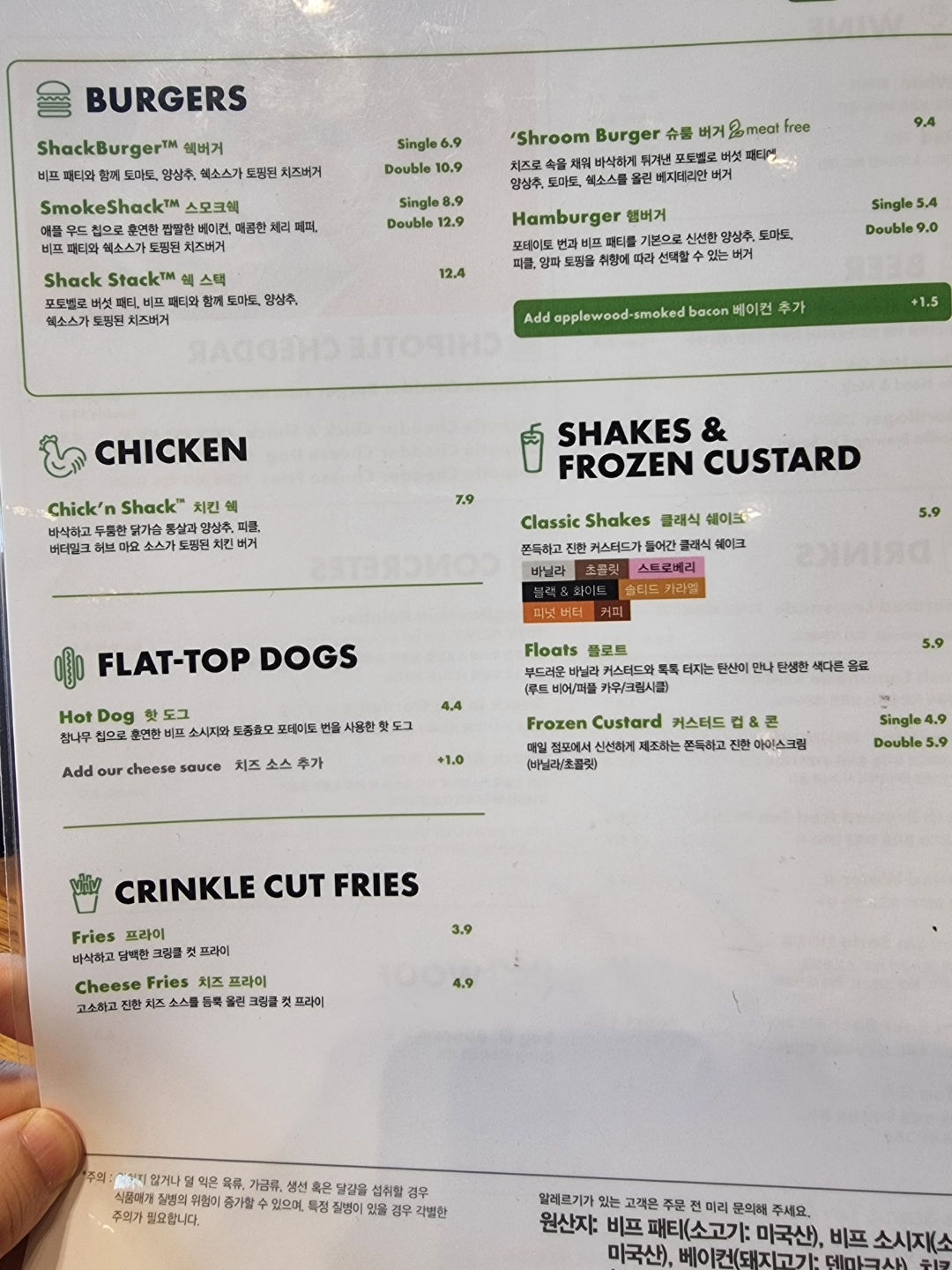 쉑쉑버거는 프렌차이즈 햄버거류 중에서는 1티어라고 불릴만큼 맛있는 햄버거다.