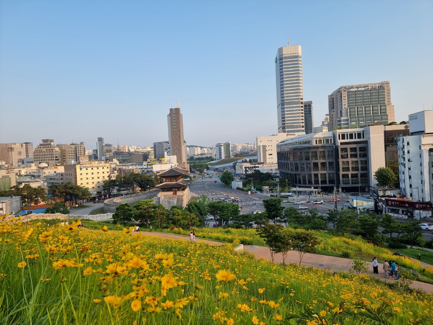 성곽공원에 지금 가면 이렇게 노란 금계국이 잔뜩 피어있다.