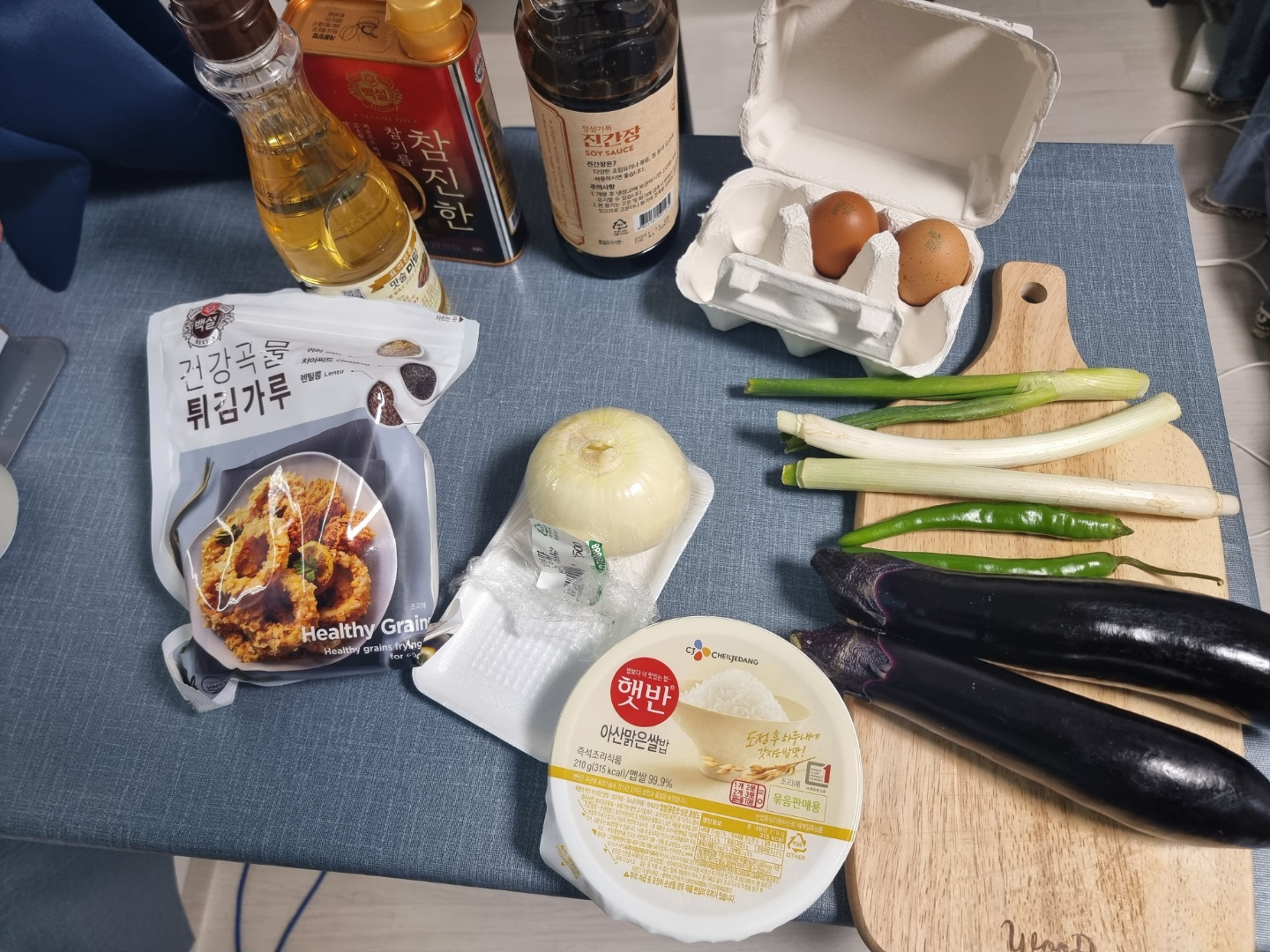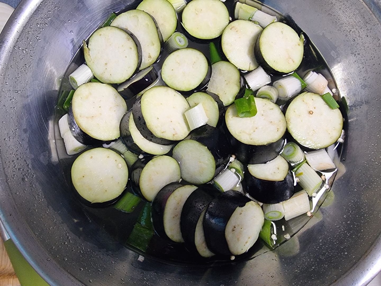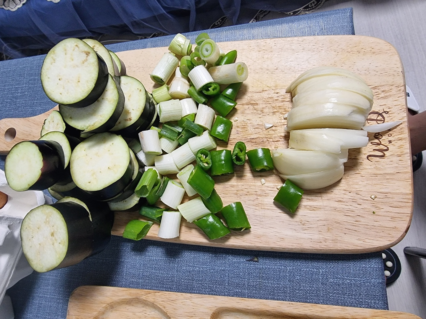 - 들어가는 야채들 : 가지 1~2개, 청양고추 2~3개, 파 2~3개, 양파 1/2개