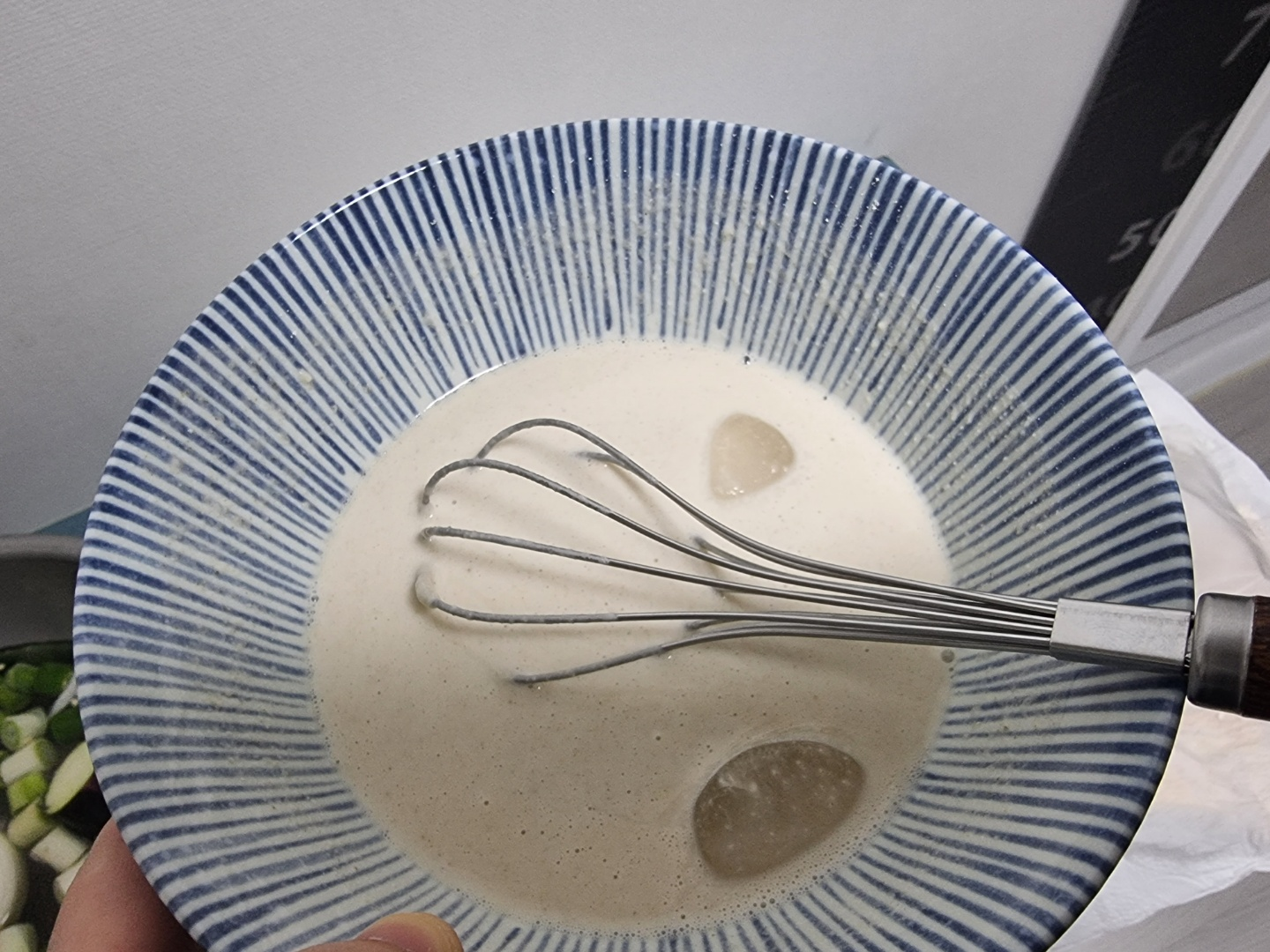 7. 만든 튀김옷을 잘 저어 묽은 상태가 되게 합니다.