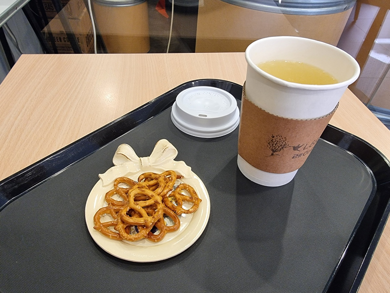 이렇게 프레즐과자랑 같이 메뉴가 나오고