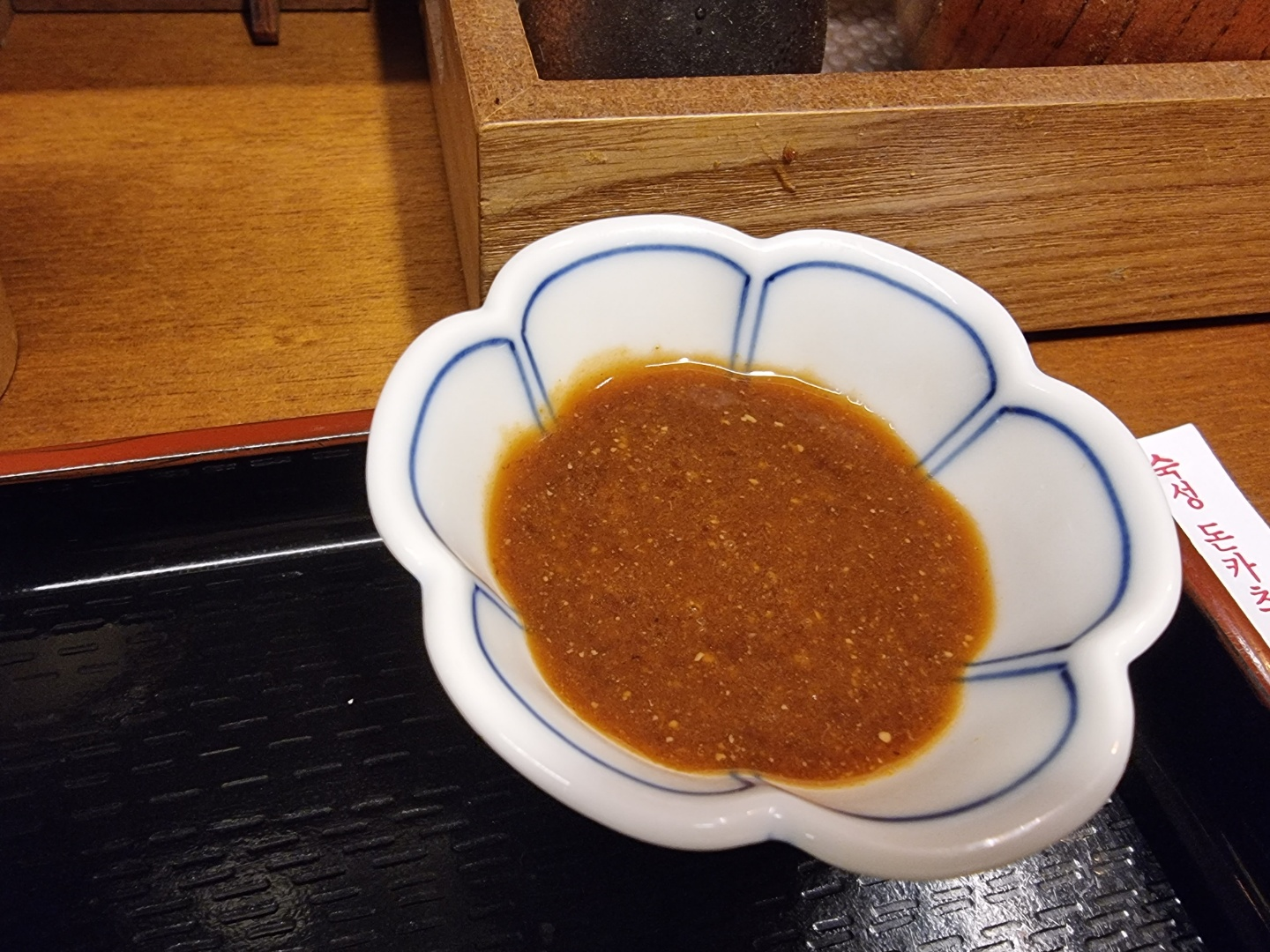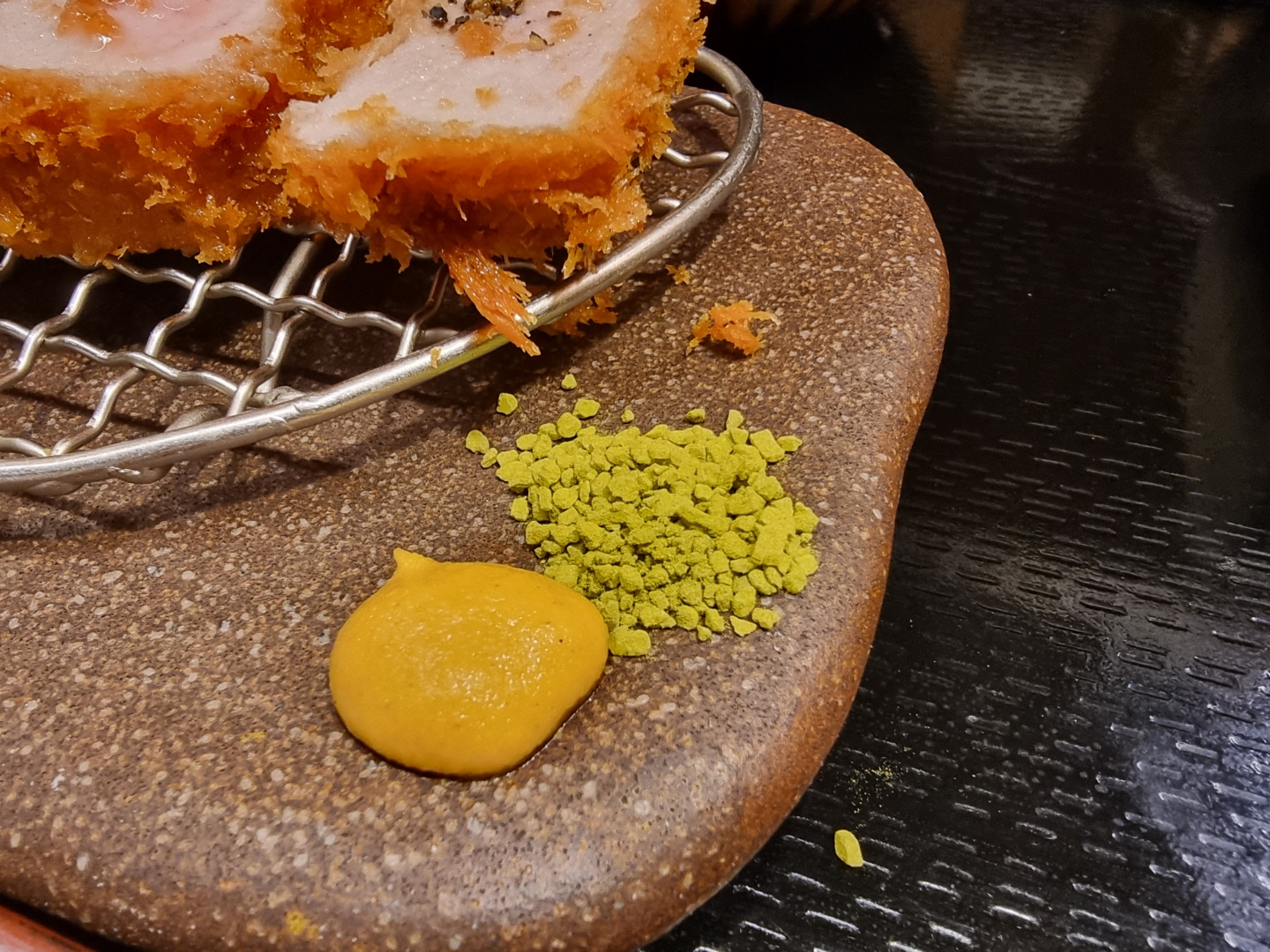사용할 수 있는 소스는 말차소금, 겨자소스, 돈까스소스가 제공된다.