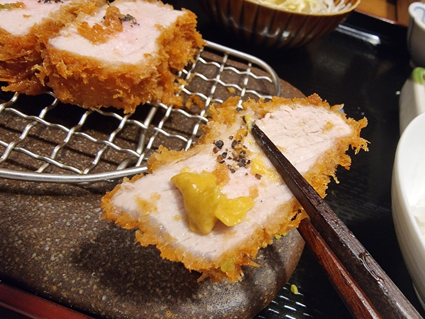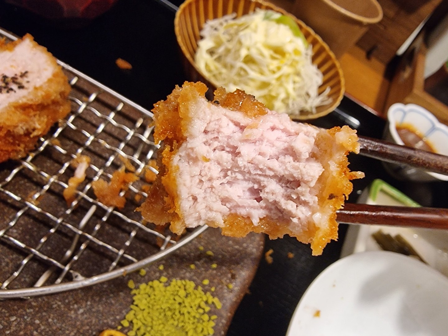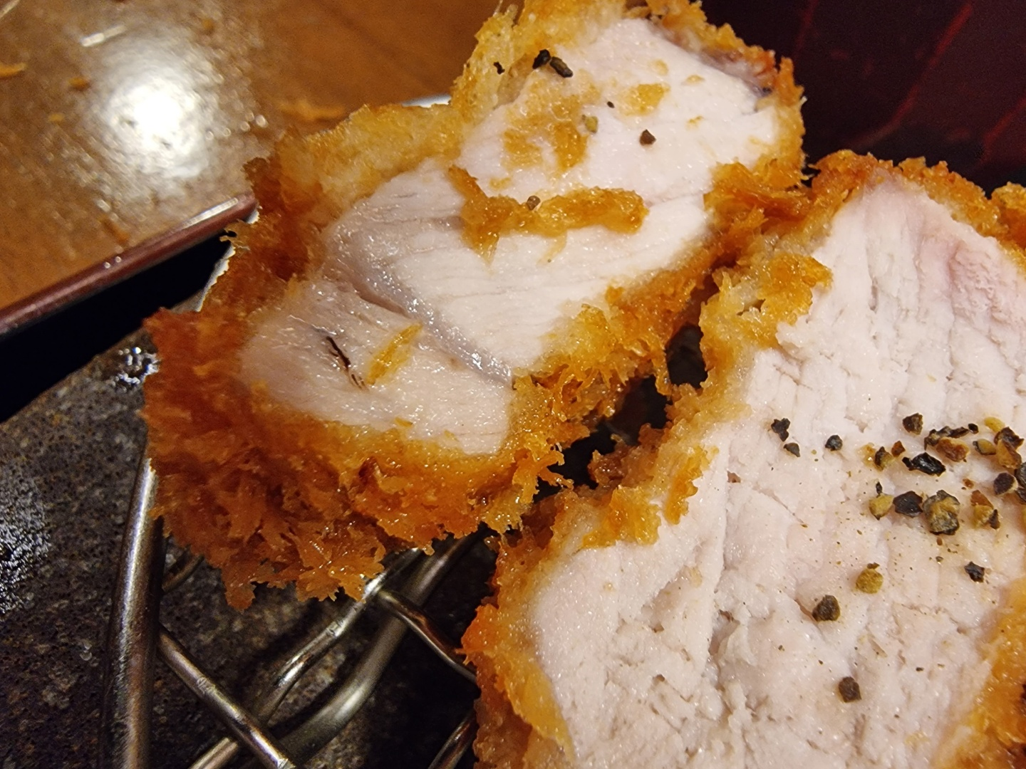 돈까스 단면은 적당한 두께에 튀김옷은 얇은 편이다.