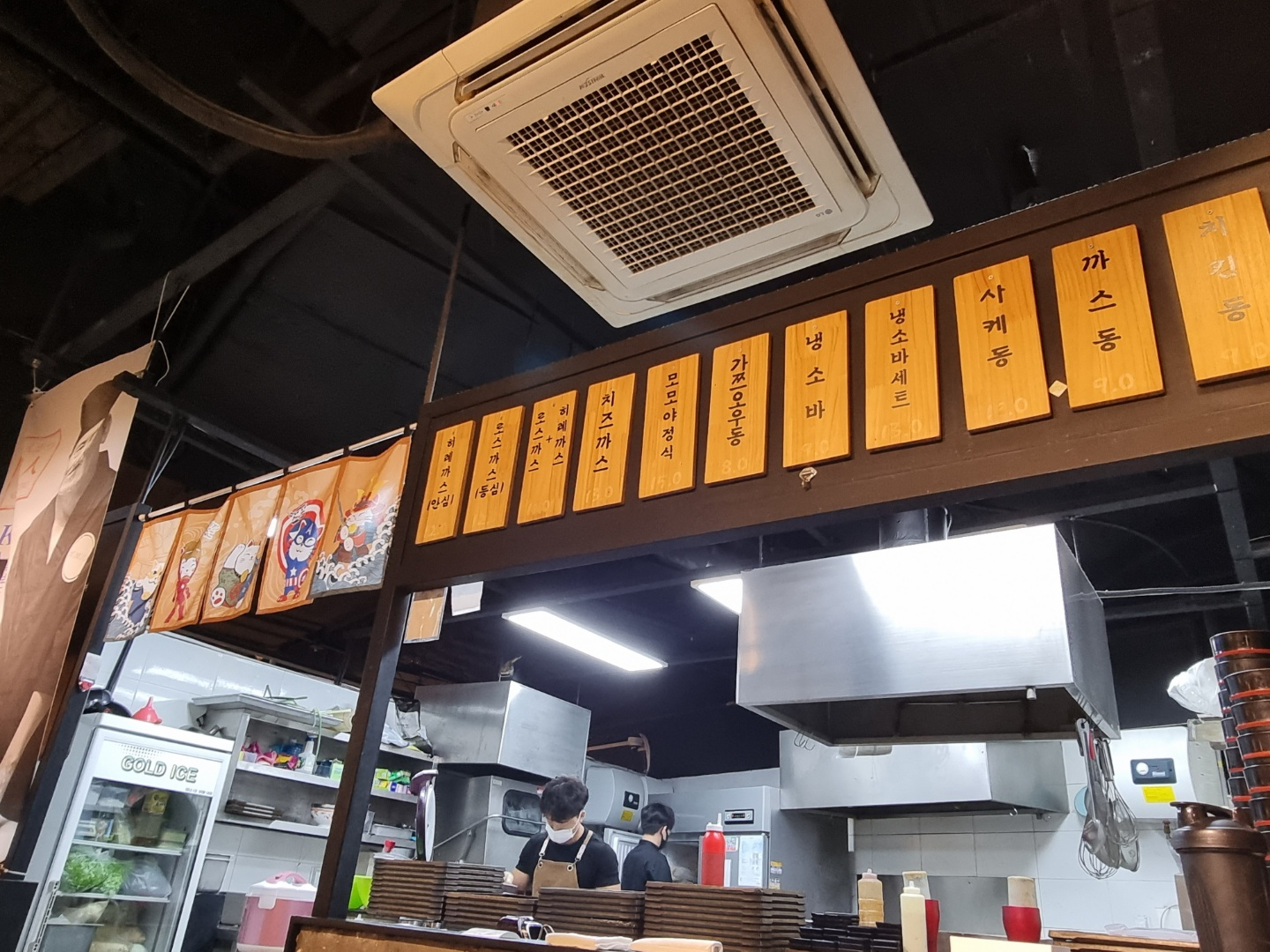 오픈키친이라서 제조하는게 보이는데 이쪽에만 일본 느낌이 나도록 인테리어가 되어있다.