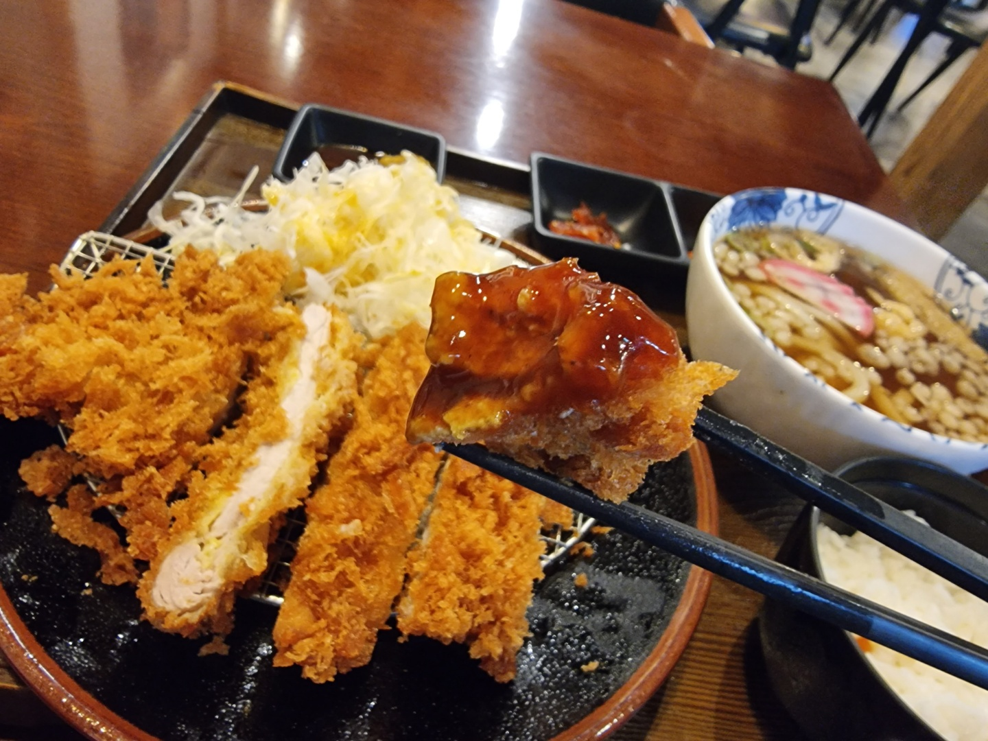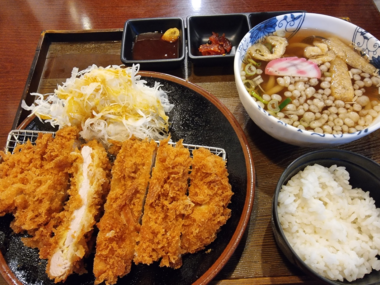 주문하면 이런 구성으로 나오고 크게는 돈까스+우동이라고 보면 된다.