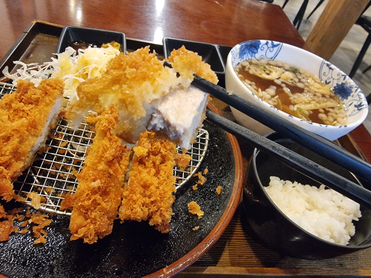 돈까스는 적당한 튀김옷에 하얗게 될 때까지 잘 익혀서 나온 Well-done 돈까스다.
