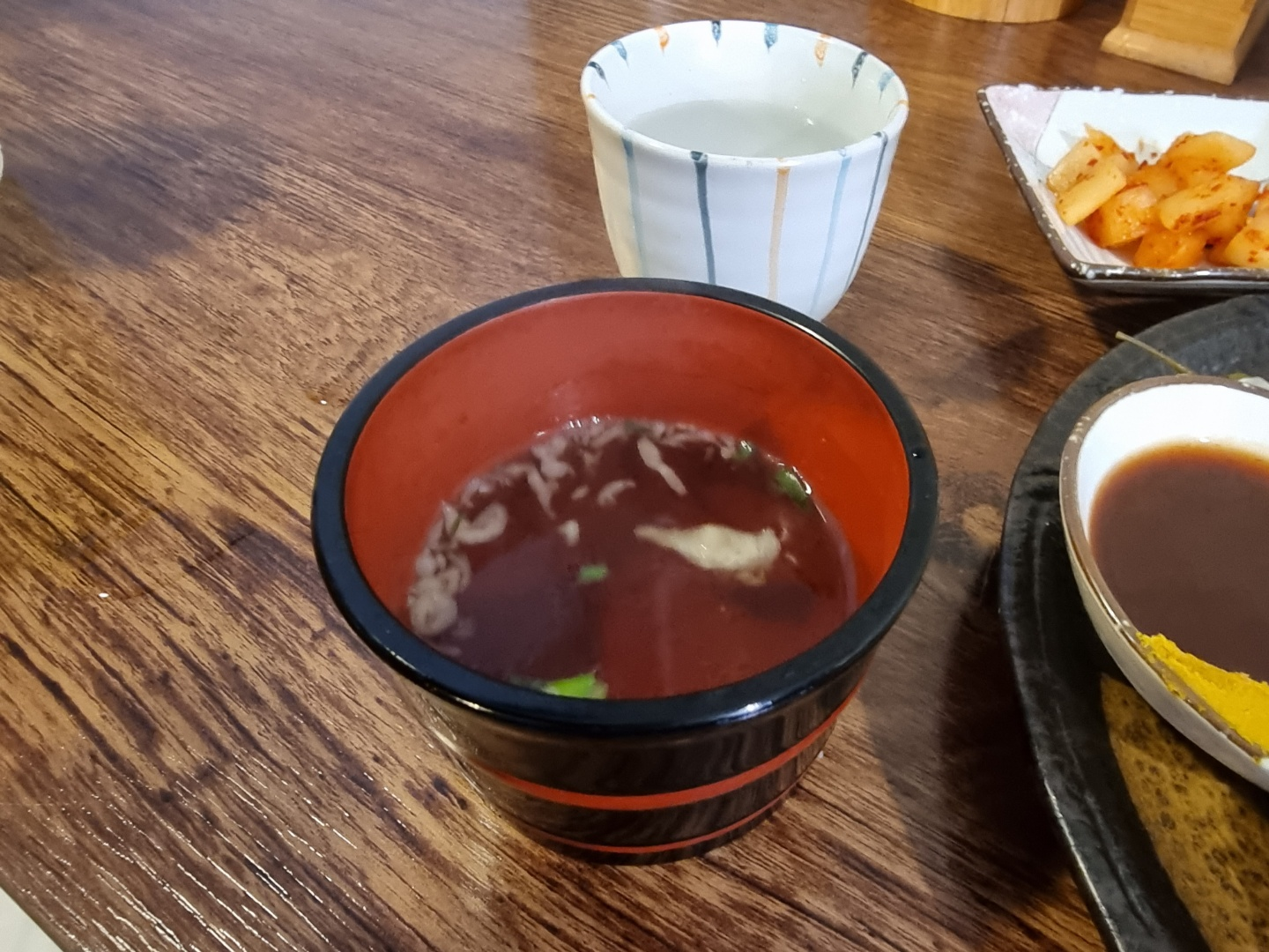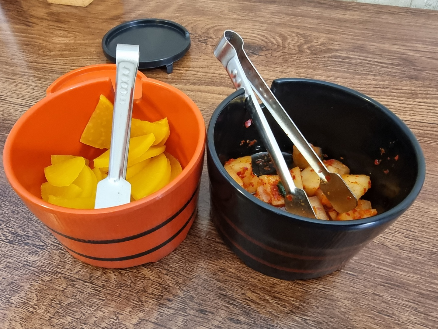 정식이 아니어도 사이드로 샐러드, 장국이 나오고 김치는 테이블에 소분되어 셀프로 덜어먹을 수 있게 되어있다.