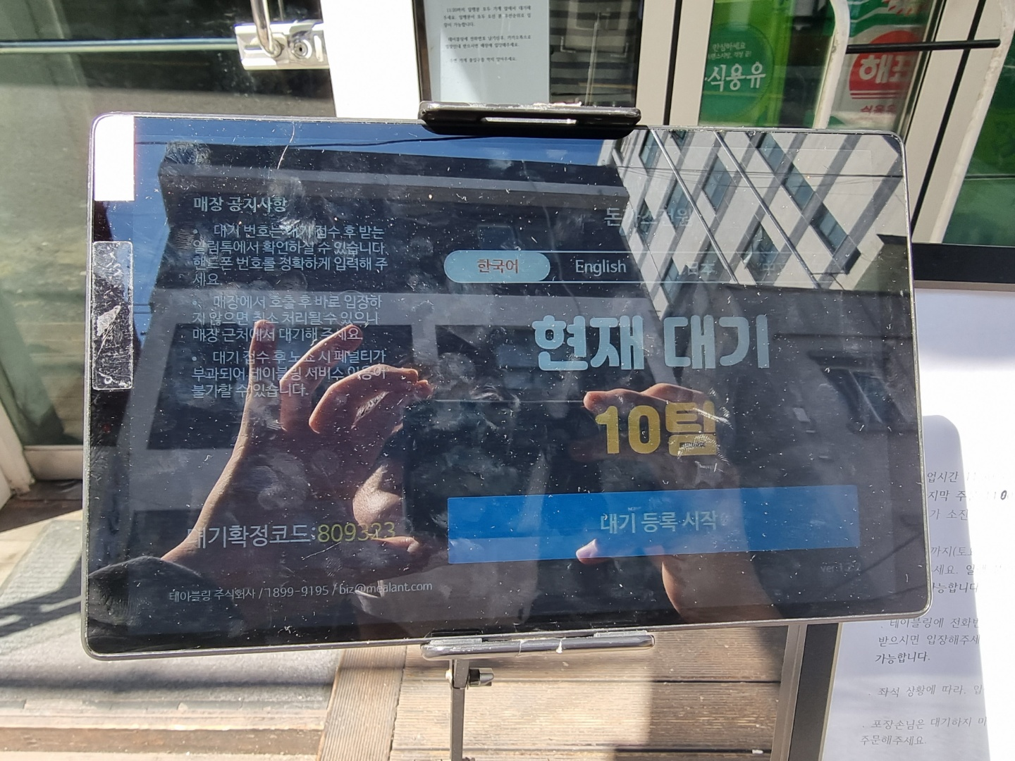 웨이팅은 가게 문앞에 가면 이렇게 태블릿으로 대기등록을 할 수 있다.