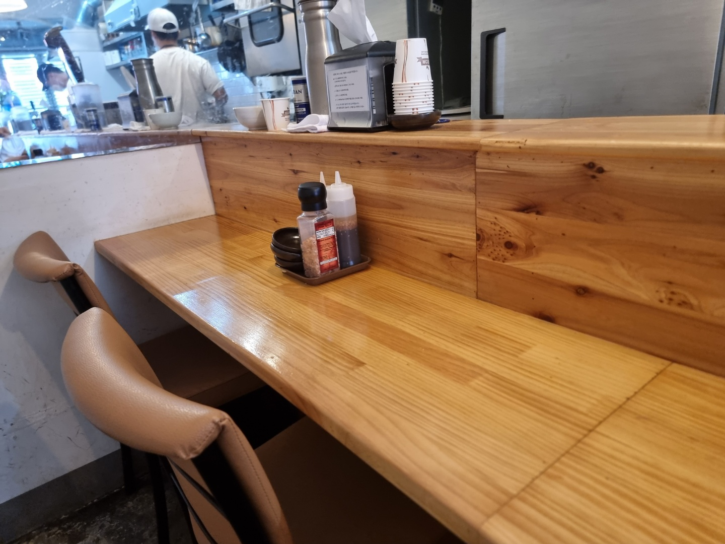 모든 테이블은 이렇게 1자형 바로 되어있으며, 좌석이 7개인가 8개밖에 없다.