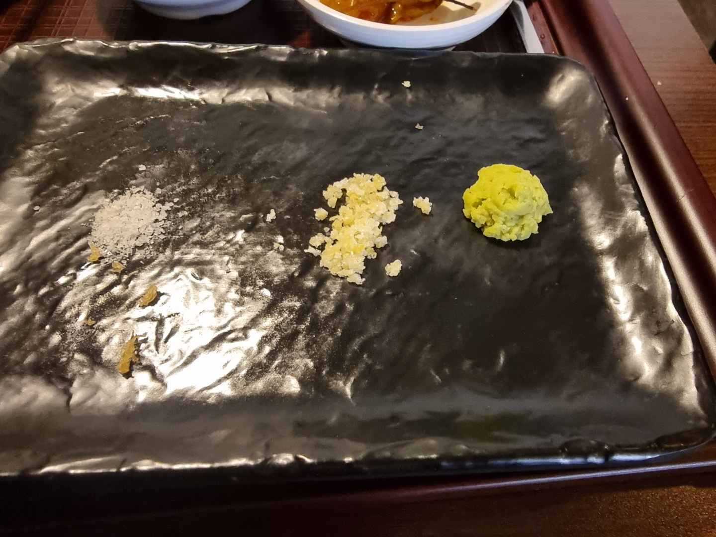 나머지는 육즙이 많기 때문에 그대로와의 조화를 위해 트러플 소금의 조화가 훌륭하다.