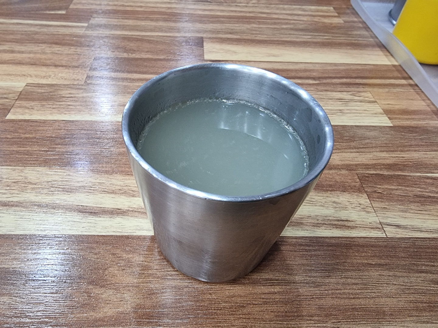 일단 주문하고 기다리고 있으면 먼저 따뜻한 육수를 내어주신다. 사골을 끓여 만든 육수다. 설렁탕같은 맛?