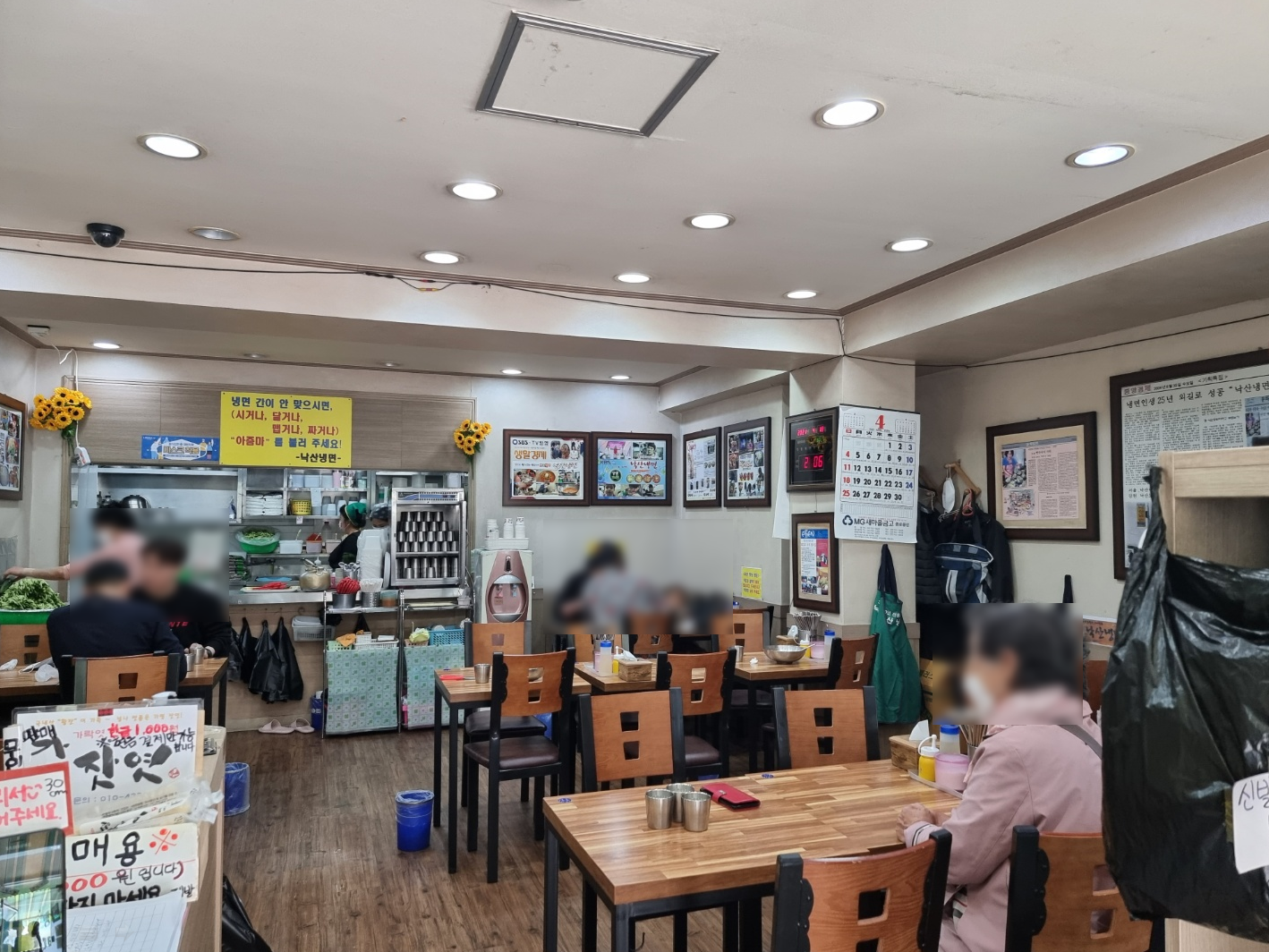 1층의 모습이다. 2층은 안올라가봐서 잘 모르겠다. 가게가 넓은 편은 아닌데, 메뉴가 단일메뉴고 냉면이라서 회전이 상당히 빠른 편이다. 혹시 대기가 있어도 금방 빠진다고 생각하면 된다.