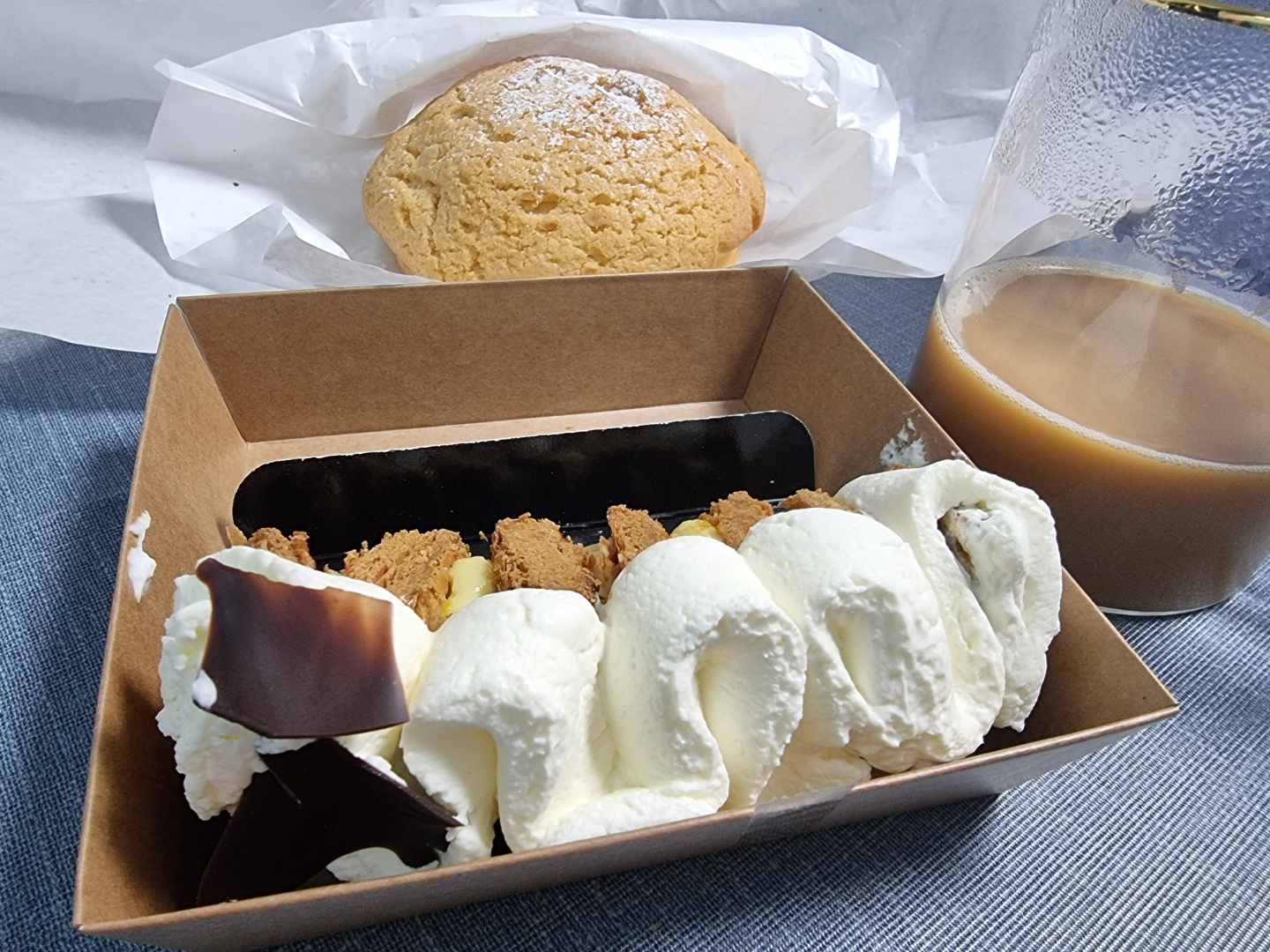 일부로 밀푀유를 먼저 먹고 크림이 남는데 소보로를 이 크림에 찍어먹었다.