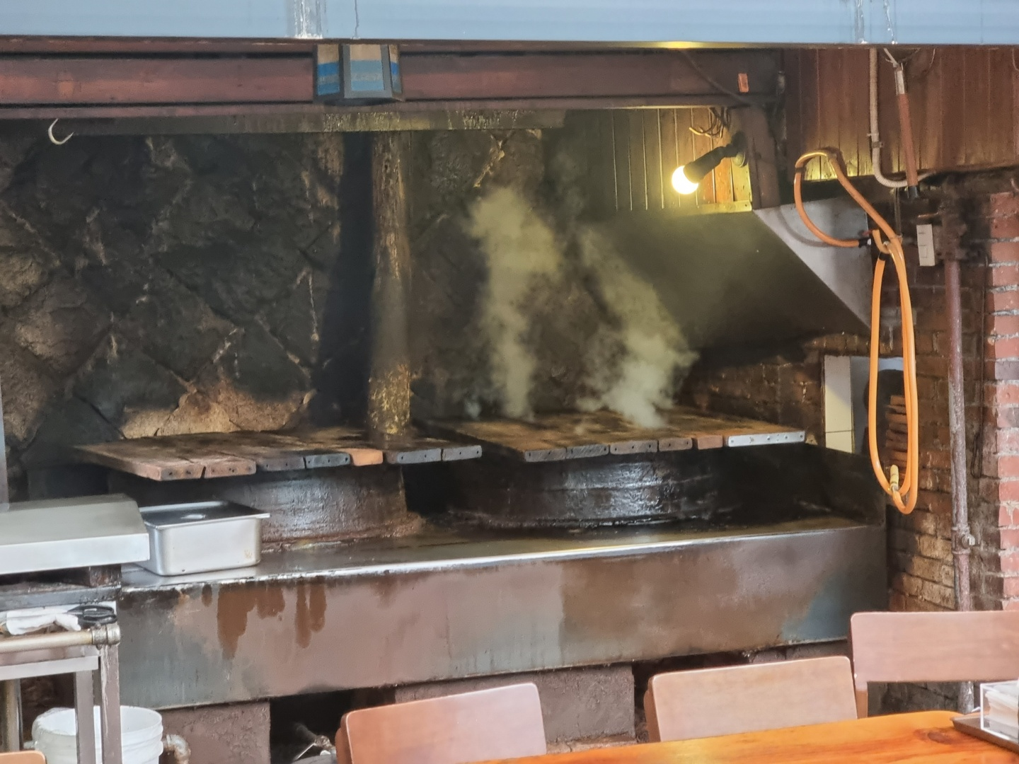 뒤쪽으로는 거대한 가마솥에서 연기가 나고 있다.
