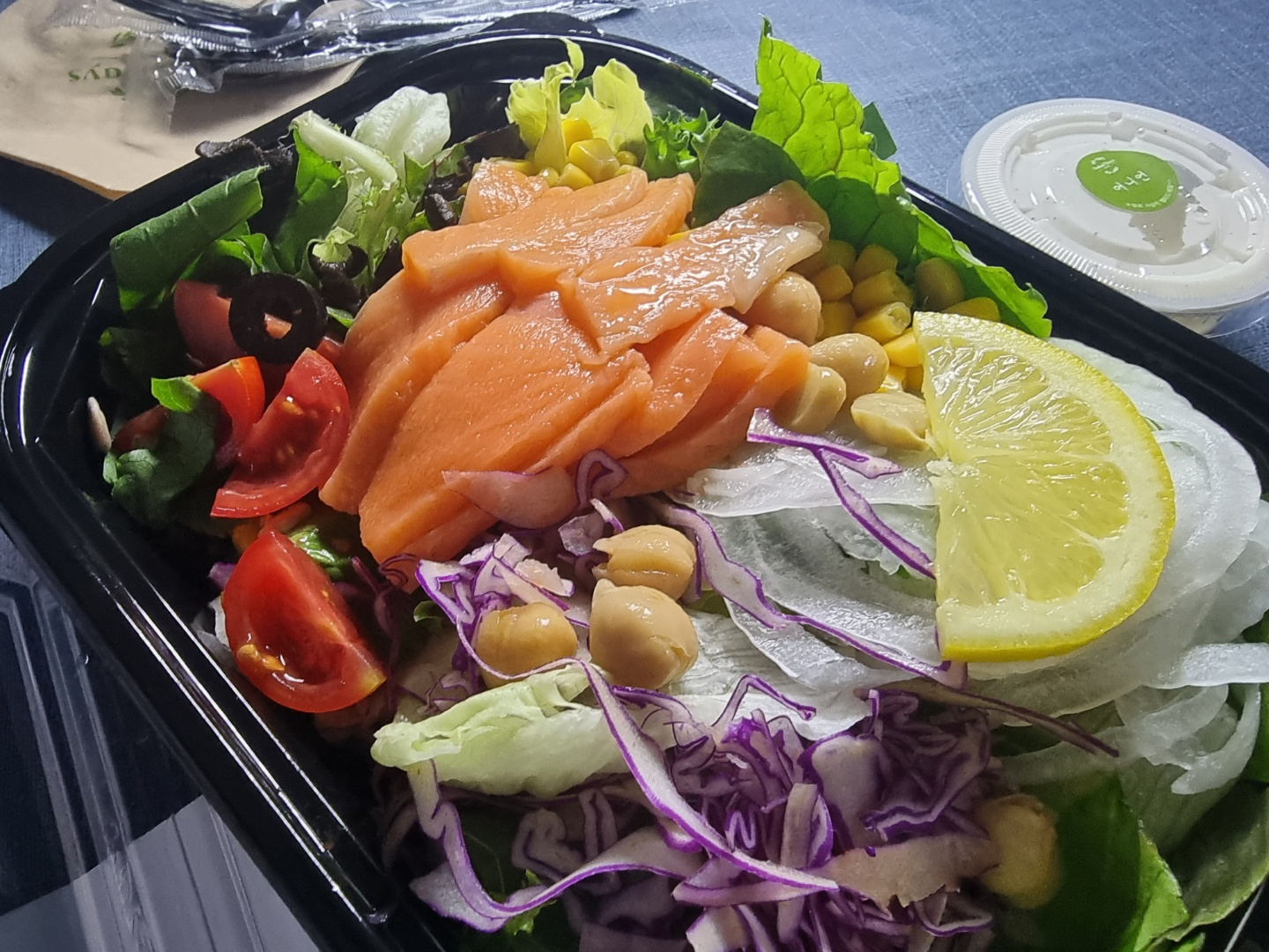 그리고 이 사진은 프렌차이즈 샐러드집의 연어샐러드인데 9,500원이다.