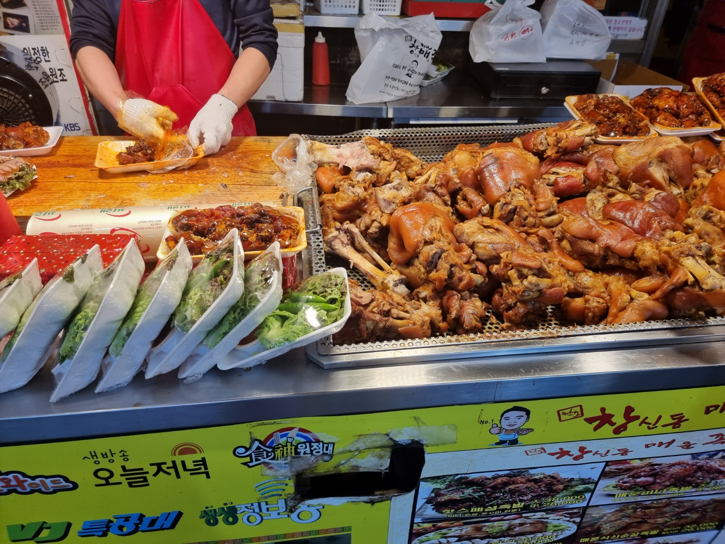 좁디 좁은 창신 골목시장을 걷다보면 이렇게 길다란 창신동 매운족발을 쉽게 찾을 수 있다.