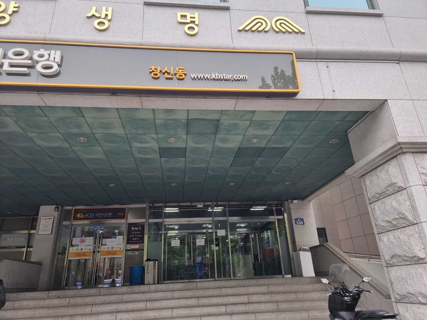 요렇게 생긴 건물에서 국민은행 옆의 문을 이용해서 빌딩으로 들어가야 한다.
