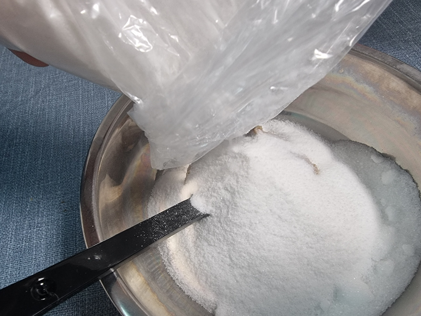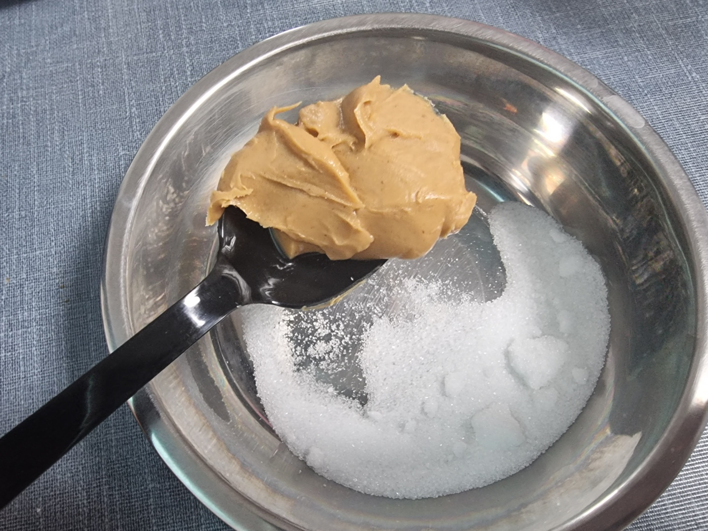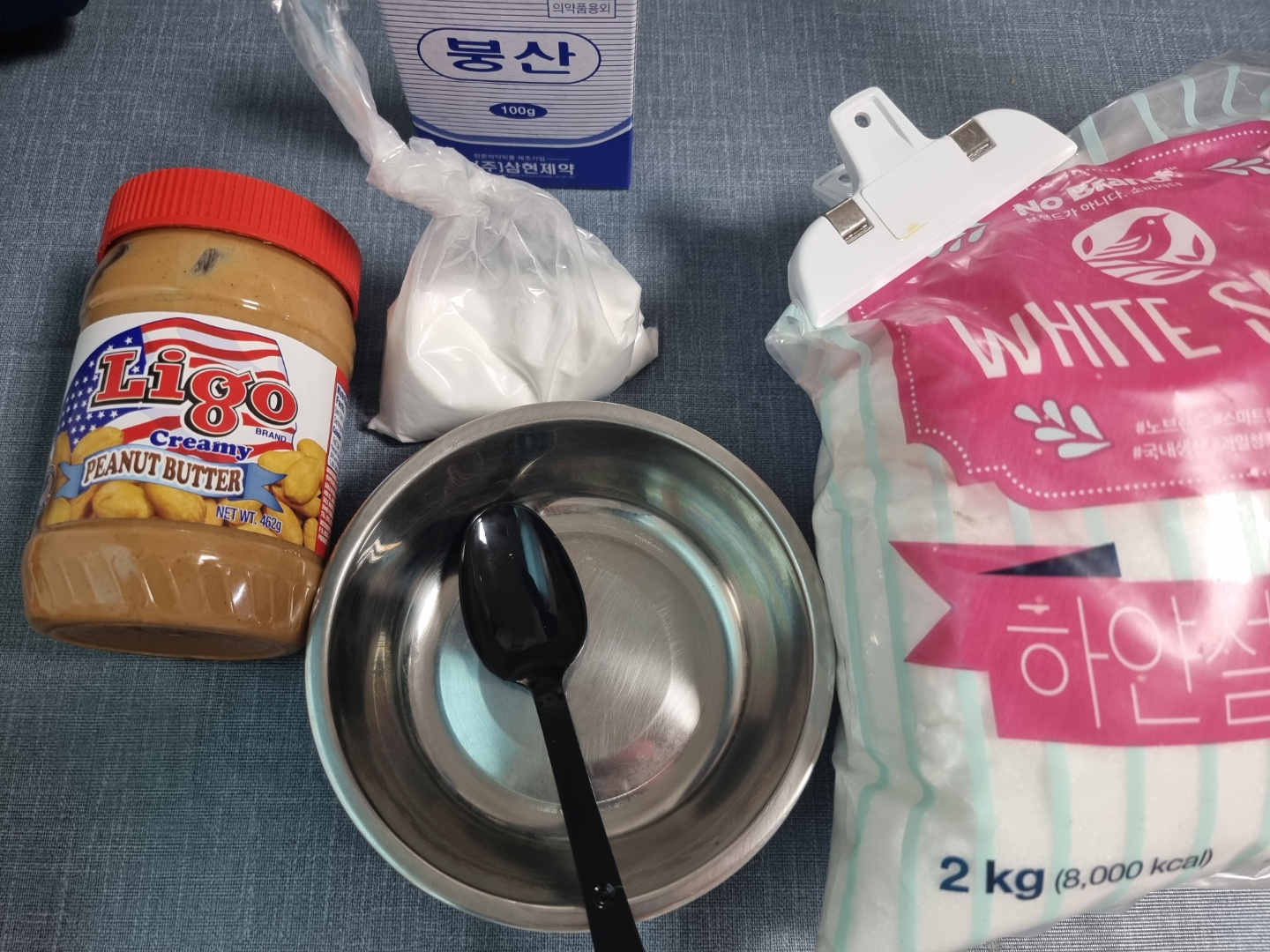붕산100g, 설탕 두스푼, 땅콩버터 한스푼, 물 반스푼.