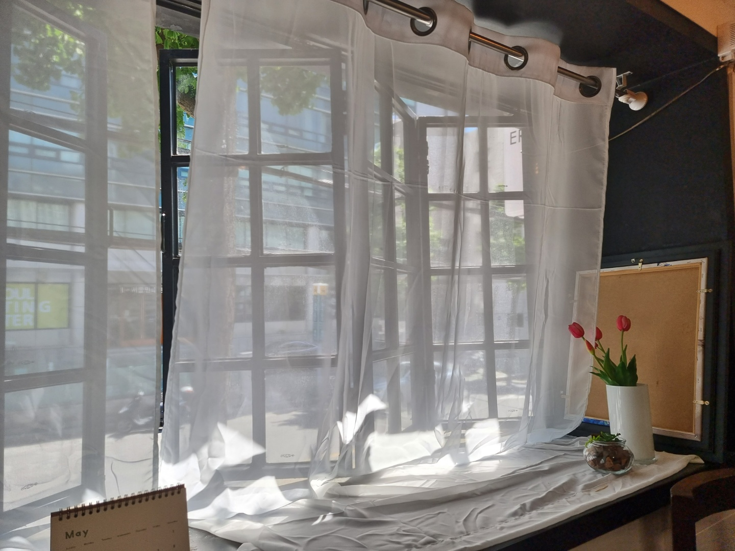 비치는 커튼이 쭉 늘어져 있어서 뭔가 되게 화창한 분위기를 연출해준다.