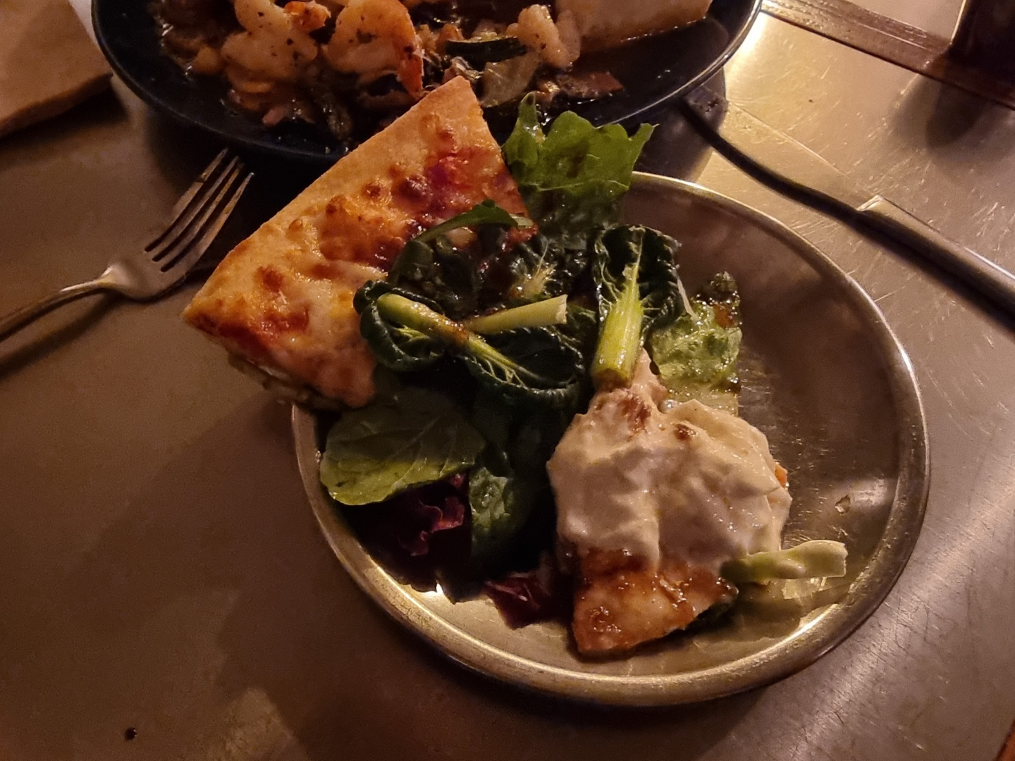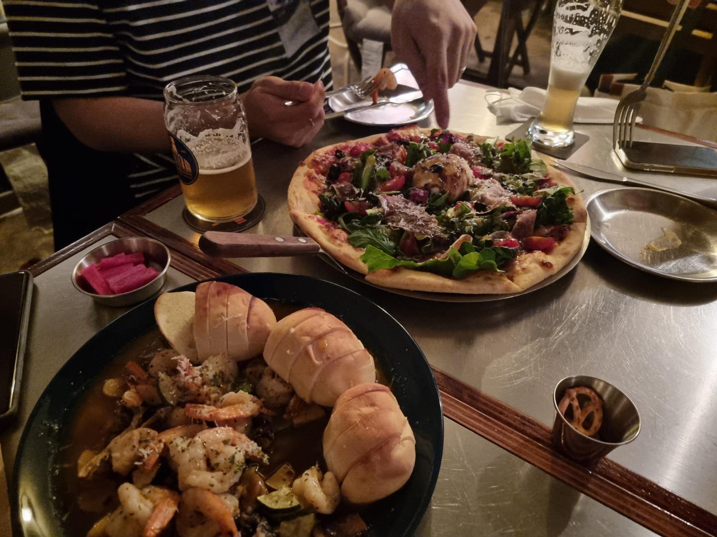 나는 부라타피자와 감바스를 주문했다.