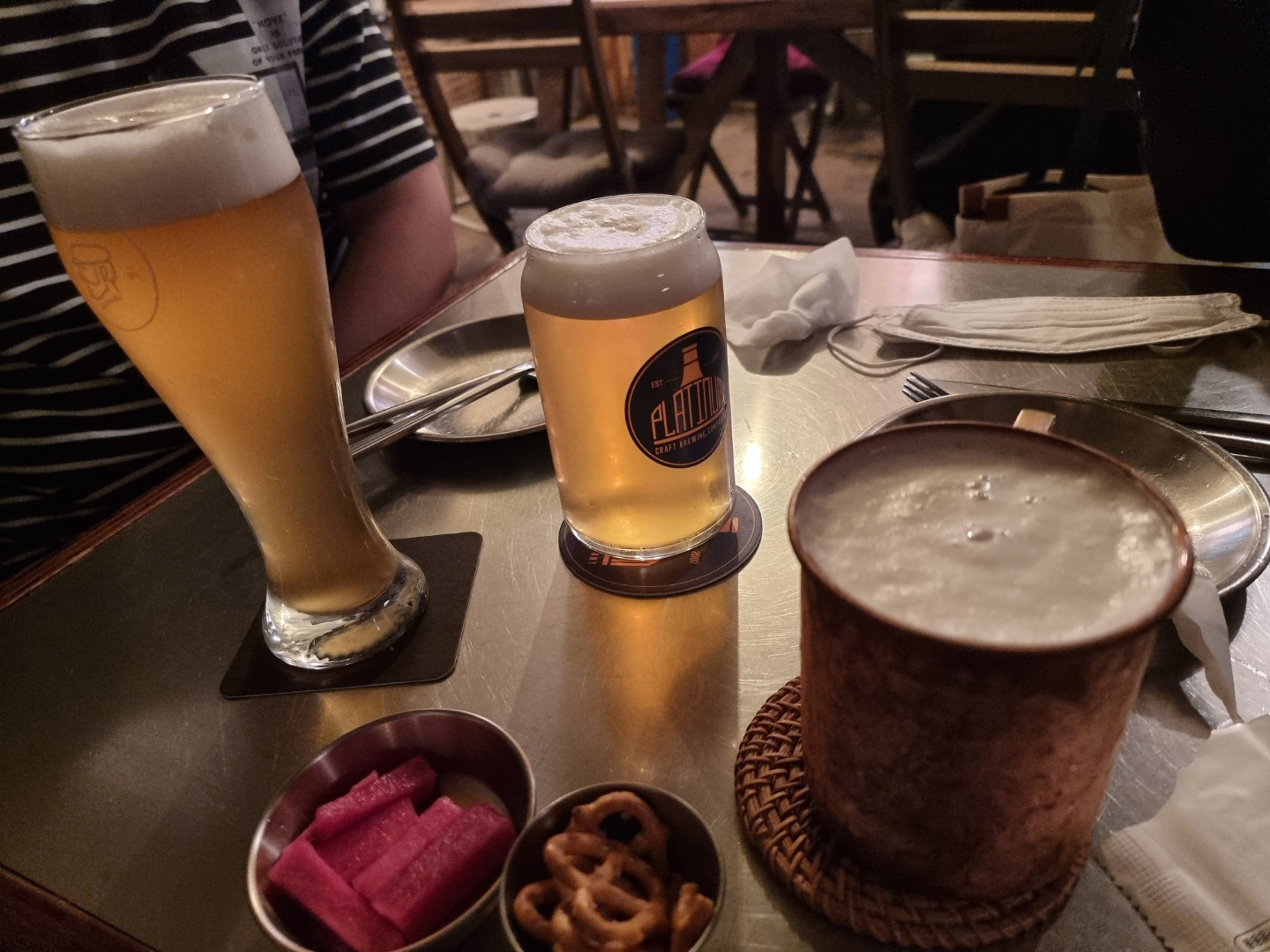 맥주를 주문하면 그 맥주 특성에 따라 잔이 다 다르게 나오는데 잔을 보는 재미도 있다.